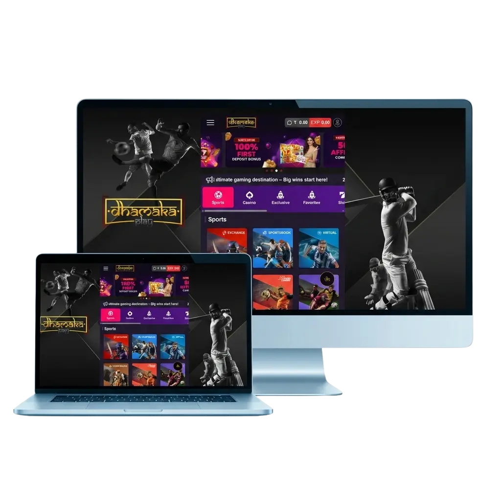 The Dhamakaplay desktop application gives you direct access to live casino games, roulette, slots, table games, and sports betting from your Windows or MacOS computer. It is free to download and delivers the complete functionality of the web platform in a dedicated, full-screen environment. The desktop version runs more stably than a browser tab, loads faster, and keeps all your favourite games and betting options within reach without needing to open a separate website.